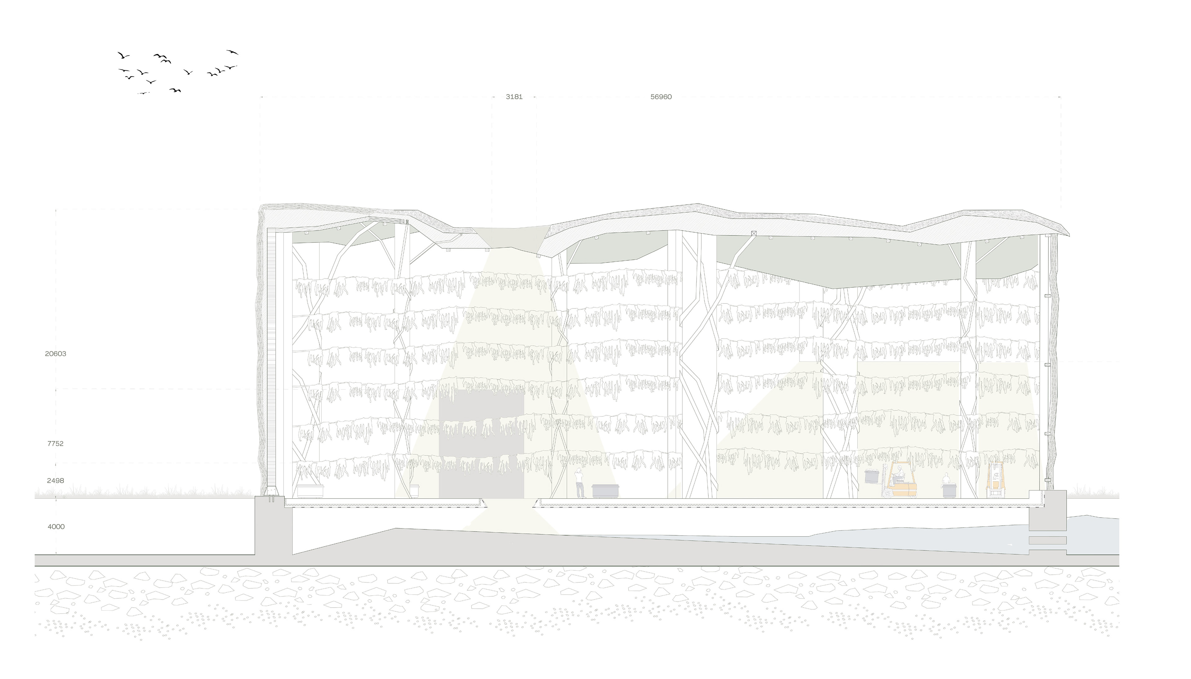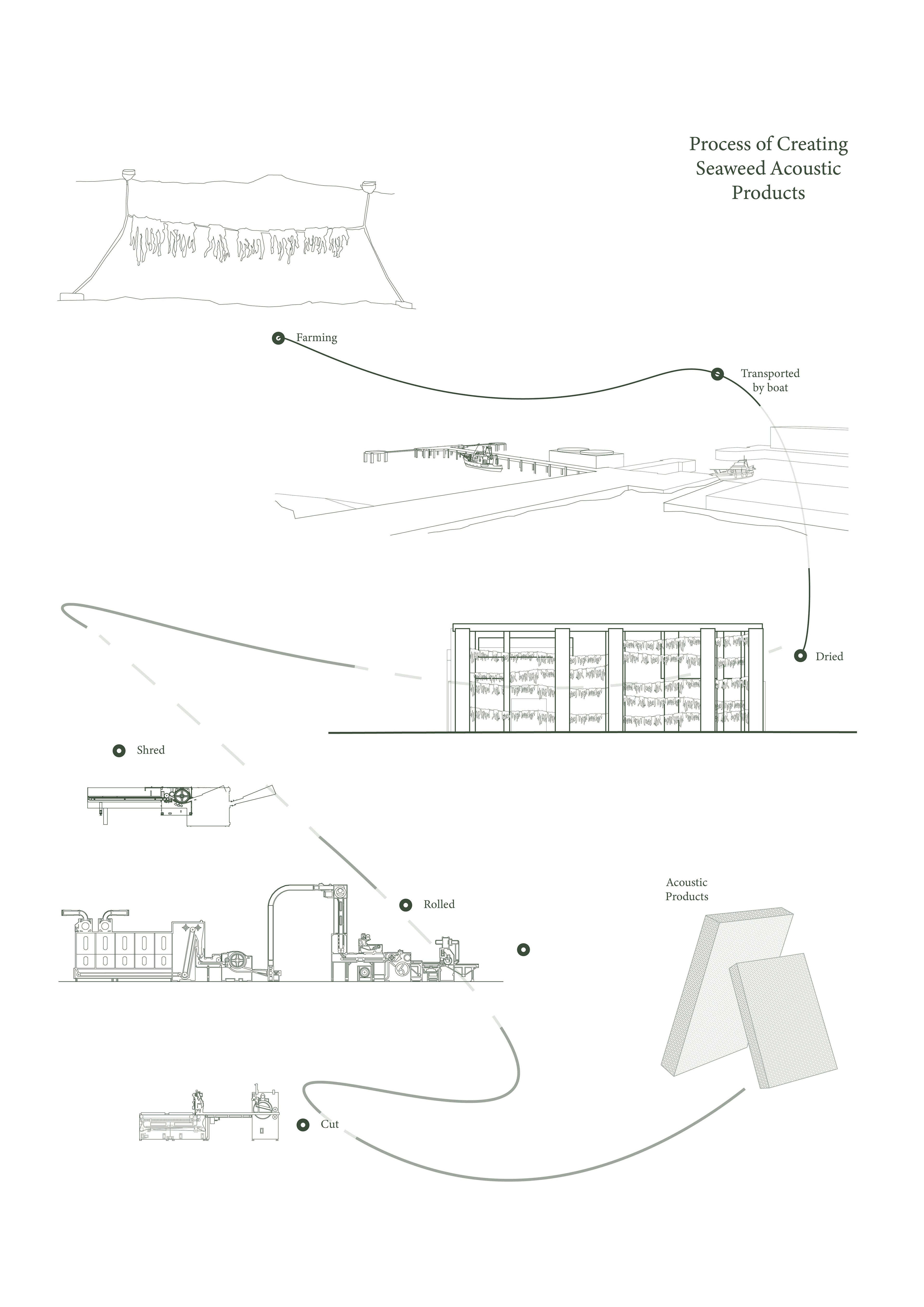 By exploring the limits of an overlooked material, this project asks how architecture can be made more responsive, less permanent and better attuned to natural cycles. The end result is not just a factory, but a place – a landmark for processes, experiments and seaweed.